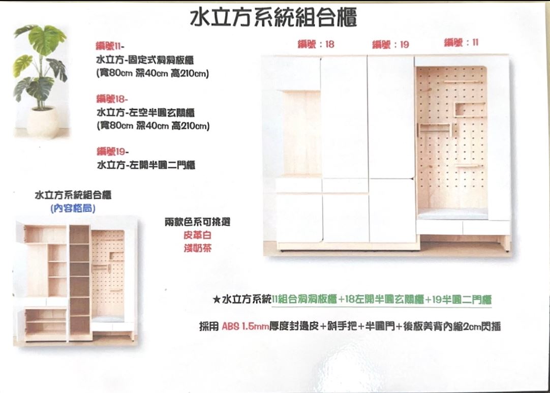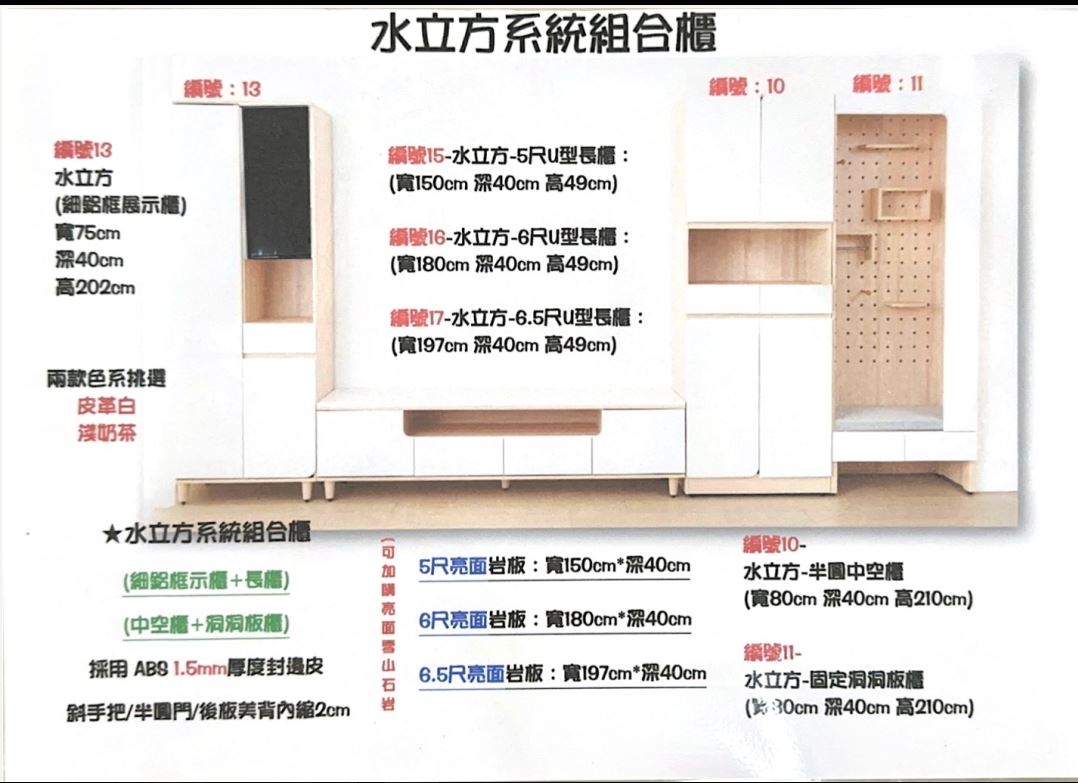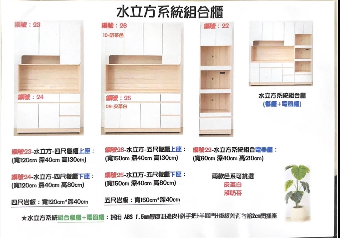 三部分:電器櫃+餐櫃+置物櫃。能自由搭配